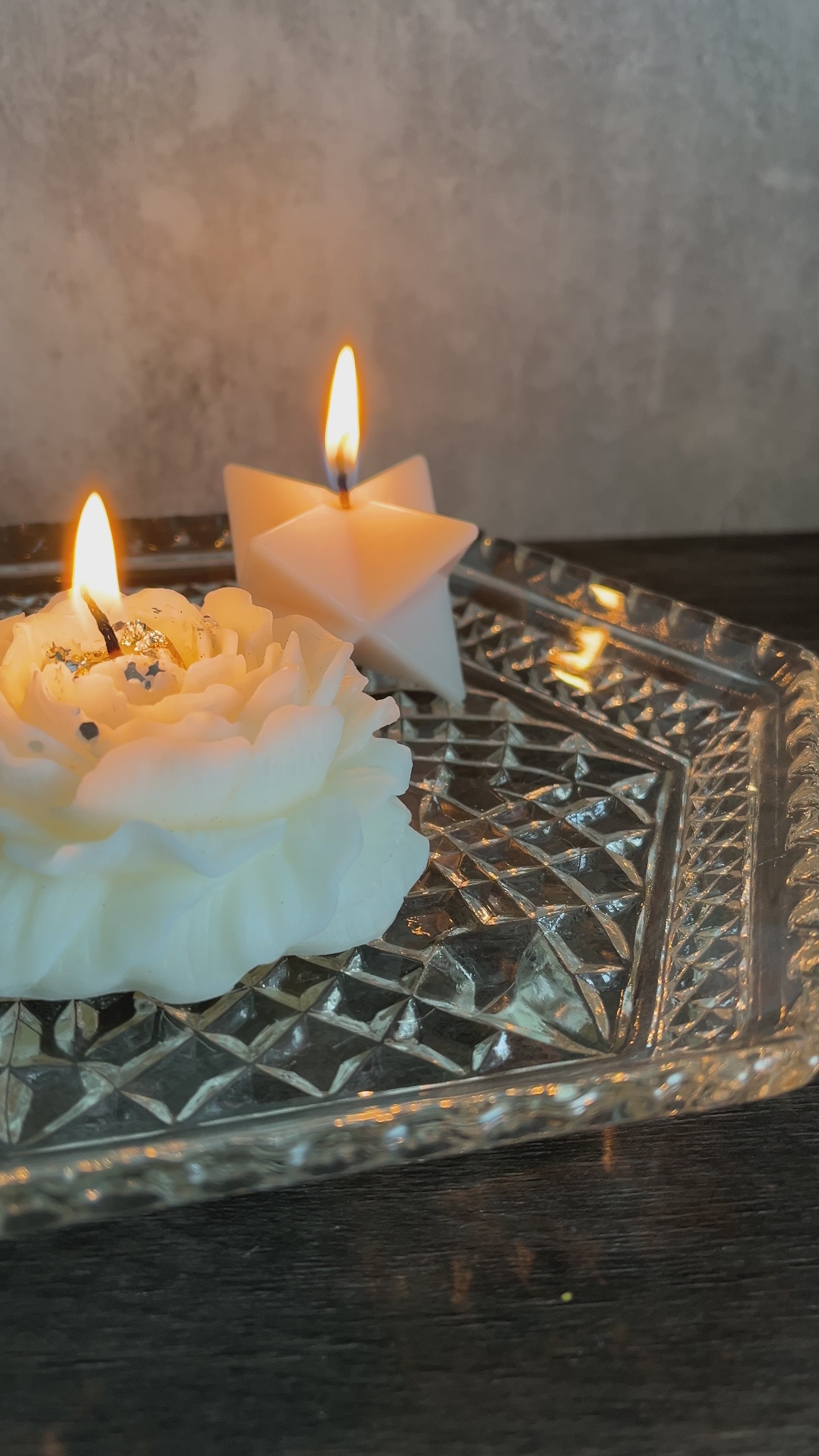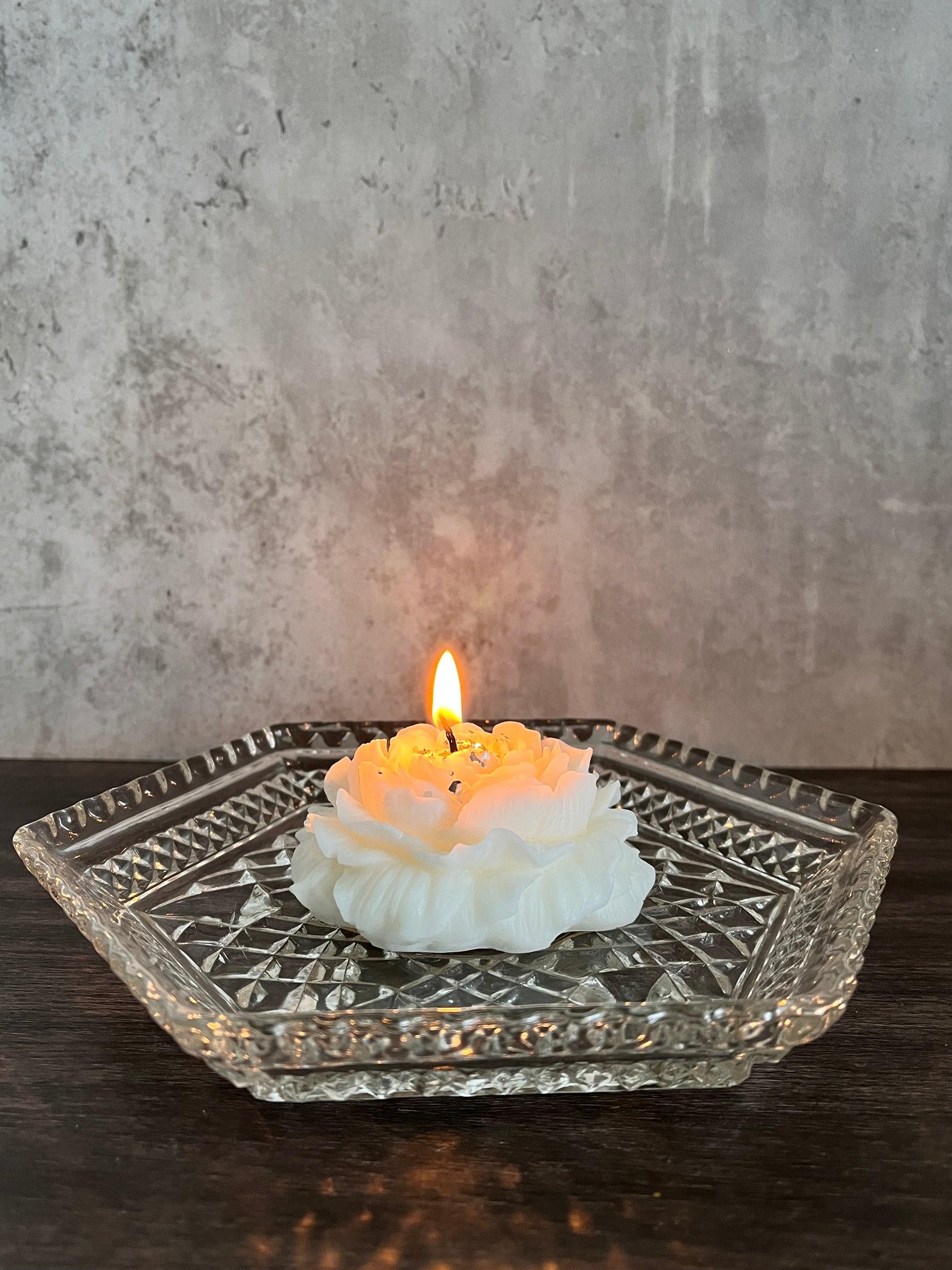 We are so proud to finally offer a product that answers our most commonly received question, "...what do I put it on?? Specifically for our stand-alone pillar candles that may need something to safely rest on while they burn, they are large enough for up to three candles at once, so you can mix scents and aromas! These cut-glass dishes can also serve as trinket dishes or water catchers for your small potted friends.Â