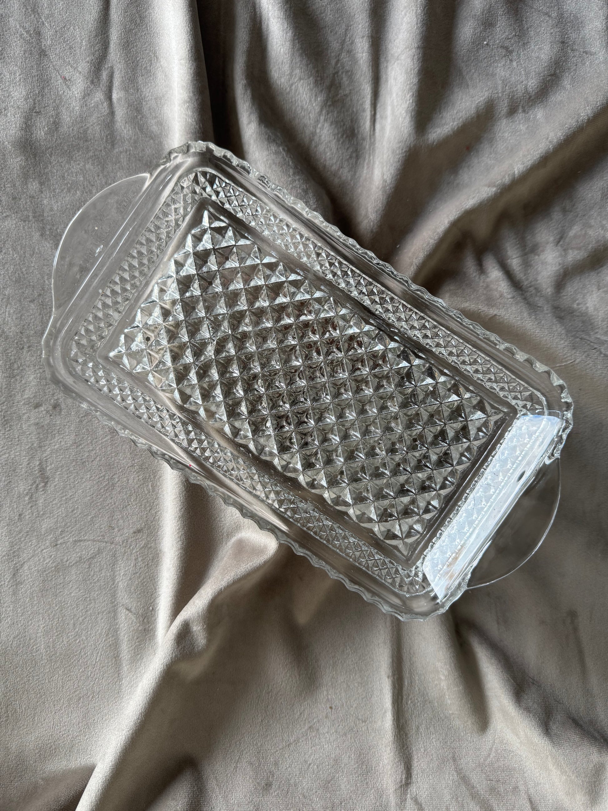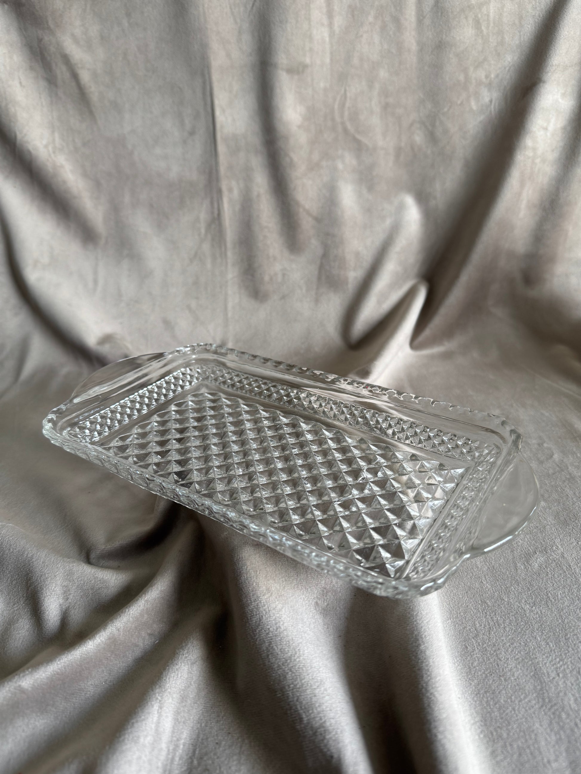 We are so proud to finally offer a product that answers our most commonly received question, "...what do I put it on?? Specifically for our stand-alone pillar candles that may need something to safely rest on while they burn, this platter can accommodate either a single pillar/decorative candle or multiple for an aesthetic centerpiece. These cut-glass dishes can also serve as trinket dishes.