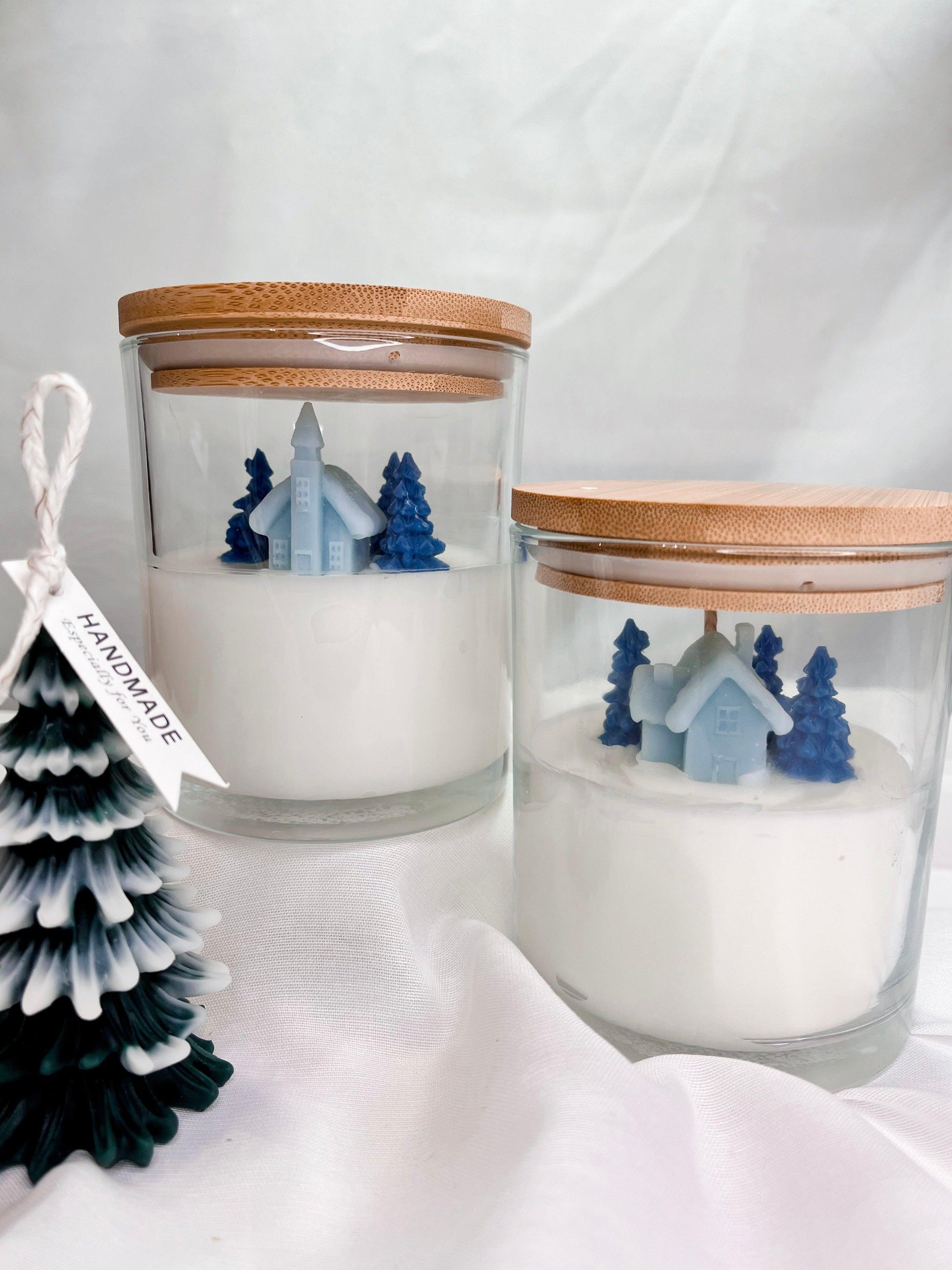 Bailiwick is pleased to introduce our first "standard" candle design included in this winter collection. Choose from either a cozy cottage or inviting church forest scene, both fragranced with Mountain Pine. They are easily giftable and travel friendly!